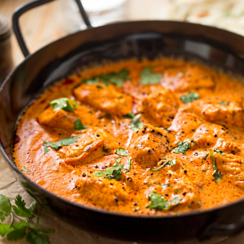 Smoked marinated chicken cooked in a rich tomato & creamy butter sauce flavoured with fenugreek leave